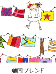 Beans Potではオリジナルブレンドのラベル・パッケージにサカモトリョウさんが描く女の子『ココちゃん』の絵を使わせて頂いております。